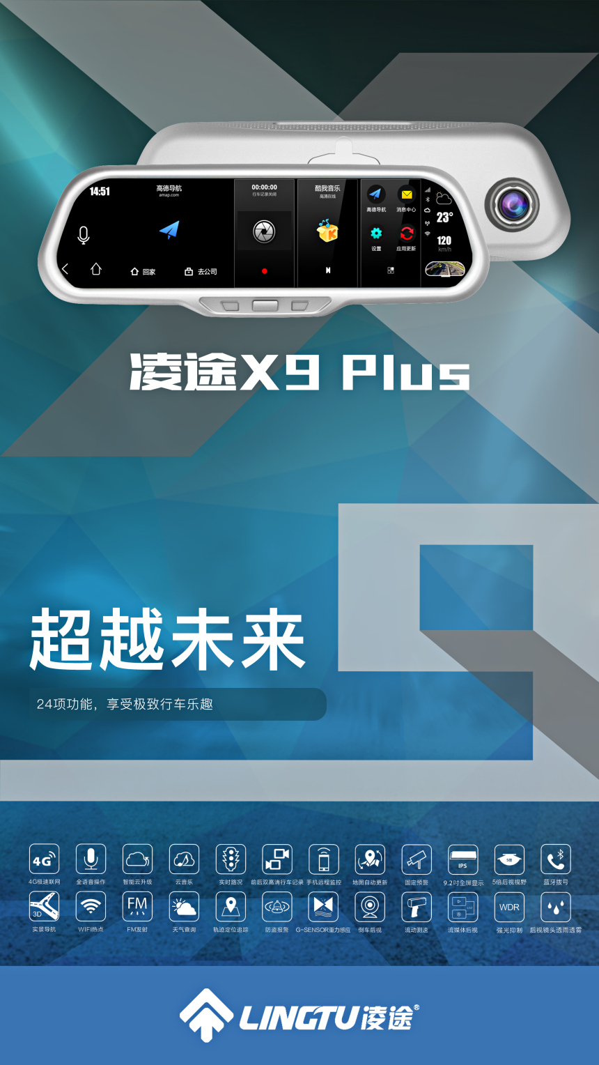 凌途X9 plus大屏多功能后視鏡