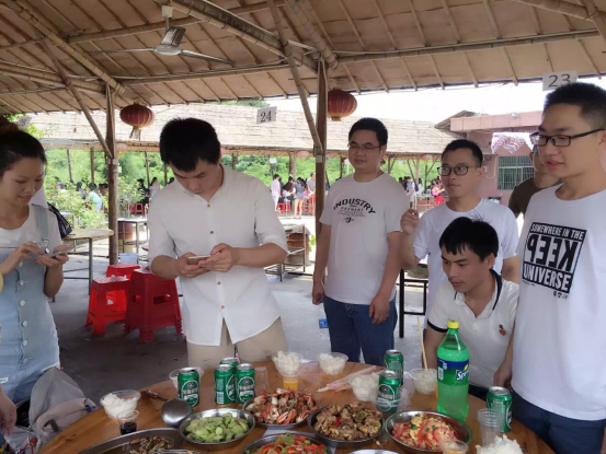 領取食材、殺魚等,一起動手生火,把做飯,俗語云:男女搭配干活不累 !一頓香噴噴的飯菜就在輕松愜意的氛圍里上桌,大家像一家人一樣其樂融融的享用午飯!